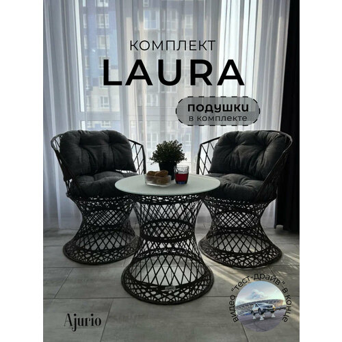 Комплект садовой мебели из поликомпозита "Laura" с серыми подушками и матовым стеклом, Набор мебели для сада, Ajurio