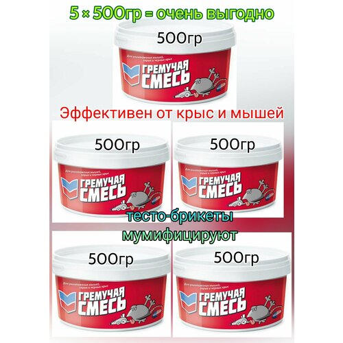 Средство от грызунов, Гремучая смесь от мышей и крыс 5 шт по 500гр