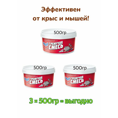 Гремучая смесь, приманка для уничтожения мышей и крыс, микс тесто-брикеты, 3шт по 500 г