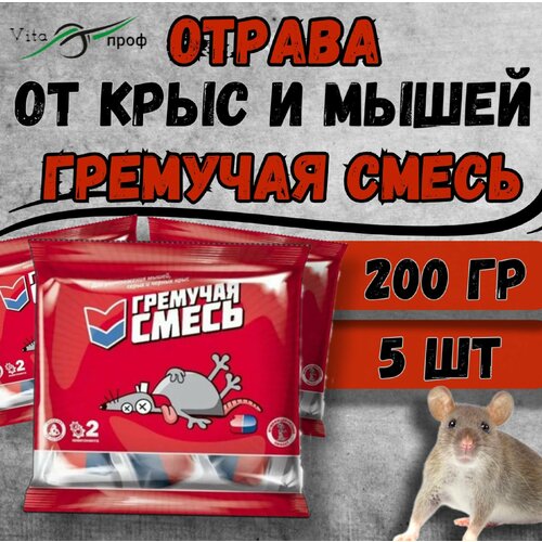 Гремучая смесь - отрава приманка для крыс и мышей яд 200 гр. 5 шт.