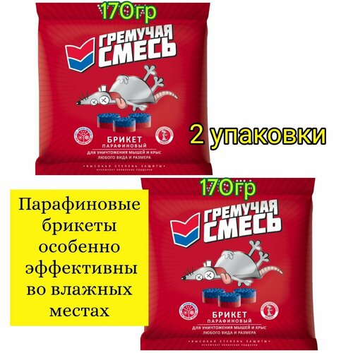 Средство для мышей и крыс Гремучая смесь 170гр парафиновые брикеты, 2 штуки
