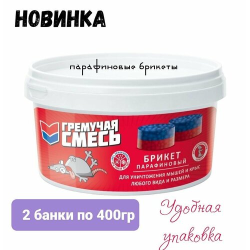 Средство для уничтожения крыс и мышей Гремучая смесь 400гр парафиновые брикеты, 2 штуки