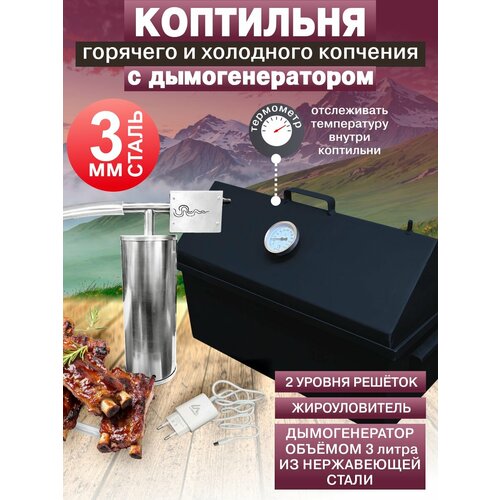 Коптильня горячего и холодного копчения из стали 3мм с дымогенератором и гидрозатвором