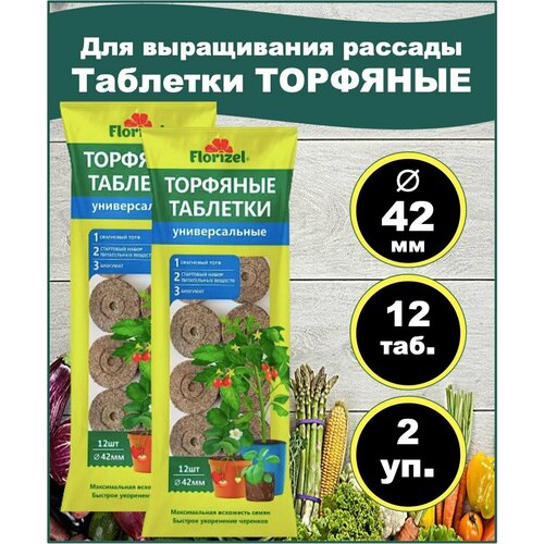Торфяные таблетки универсальные, 42 мм х 12 шт, Florizel, 2 уп