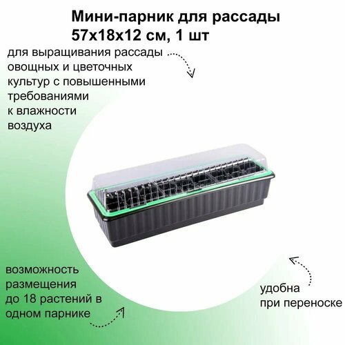 Мини-парник для рассады 57х18х12 см; защищает растения от перепадов температур, хорошо удерживает необходимые влагу и тепло в нужном количестве