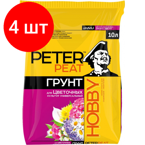 Комплект 4 штук, Грунт Универс. для цветочных культур, линия Хобби, 10 л, Х-02-10