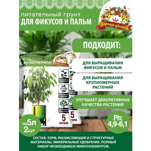 Комплект Почвогрунт Царица цветов для фикусов и пальм, 5л, 2 штуки