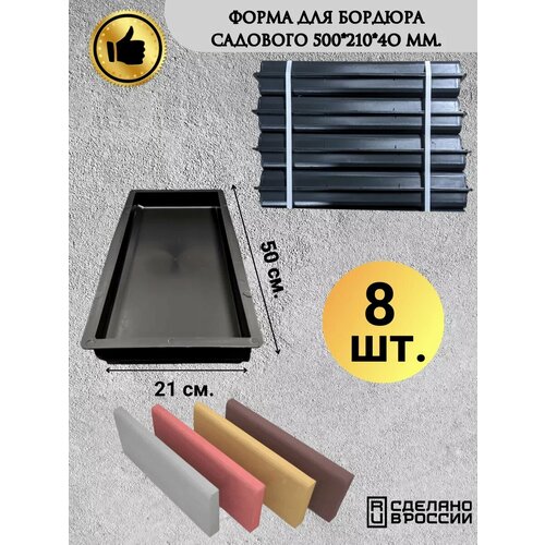 Бордюр садовый пластиковый ADVAPLAST, высота 57 мм, 8 штук+24 усиленных колышка. Коричневый