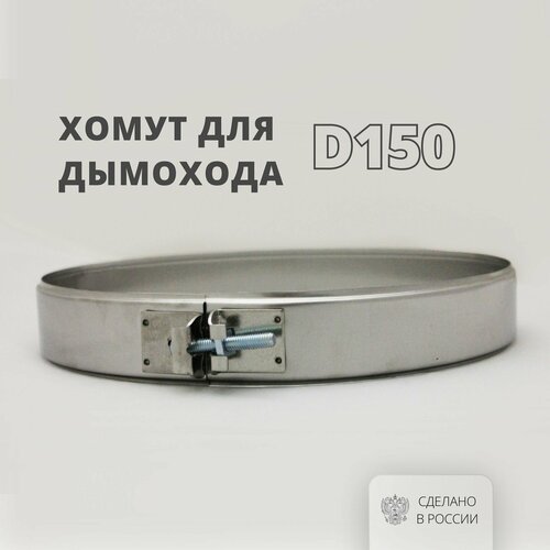 Хомут металлический для дымохода D150, ширина 40 мм, на болте , сталь AISI 304-0,5 росстин