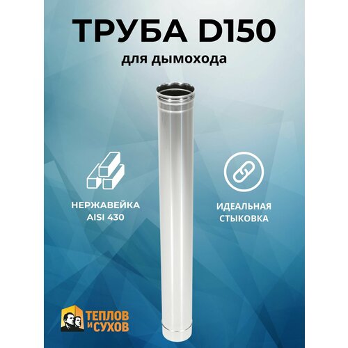 Труба из нержавейки, для дымохода 1м, 0.5мм, D150мм, одностенная "Теплов и Сухов"