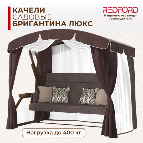 Качели садовые взрослые 4 местные для дачи раскладные с москитной сеткой Бригантина Люкс Pebble brown