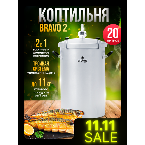 Коптильня горячего и холодного копчения Helicon Bravo 2, 20 л, для всех видов плит, нержавеющая сталь