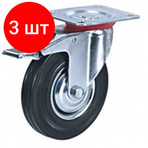 Комплект 3 штук, Колесо для тележки SCb 200, повор, литая резина, тормоз, 200мм