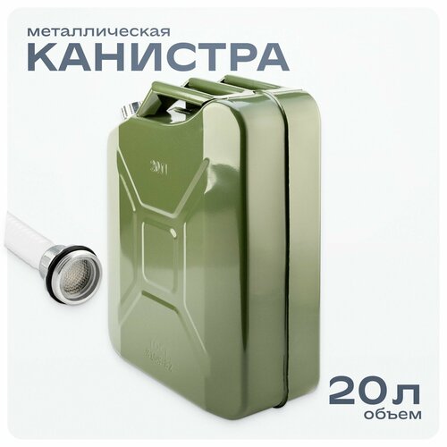 Канистра AT Канистра металлическая 20 л (с ребрами жесткости и стопорным шплинтом на крышке)., 20 л, зеленый, 1 шт.