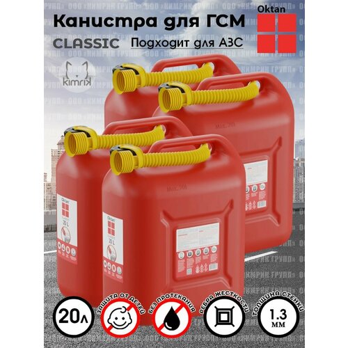 Канистры ГСМ Classic красная, 20 л х 4 шт, Oktan