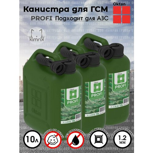 Набор Канистры ГСМ PROFI, пластиковая, темно-зеленая, 10 л х 3 шт, Oktan