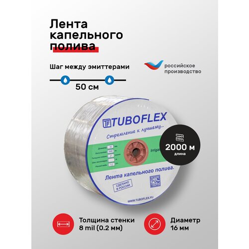 Капельный полив / Садовый полив / Лента для капельного полива эмиттерная (8 mils) 2000 метров с шагом между эмиттерами 50 см Tuboflex