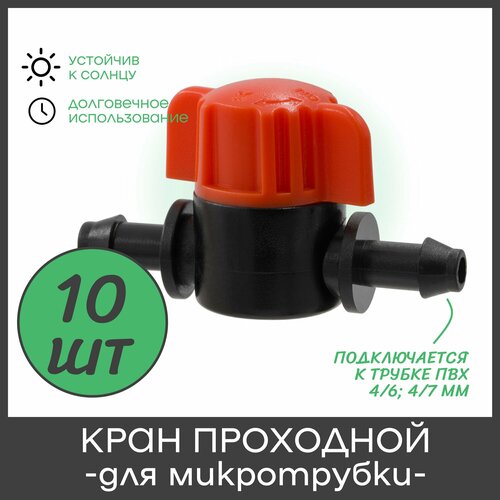 Кран проходной для микротрубки ПВХ 4/6мм или 4/7мм (1/4") - 10 штук