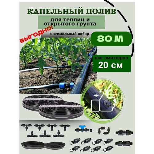 Капельный полив для теплиц и огорода от бочки на 80 метров, шаг 20 см