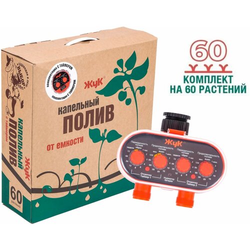 Капельный полив ЖУК (от ёмкости, на 60 растений, с двухканальным таймером)