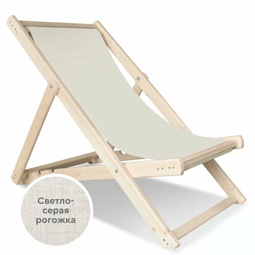 Шезлонг с серой тканью и подлокотниками, деревянный, складной