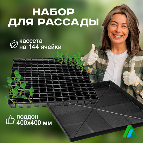 Набор для рассады 0,6л (1 кассета из 4-х стаканчиков с вкладышем + ящик) АП 116