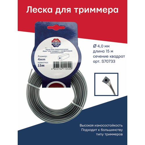 Леска для триммера 4,0 мм 15м квадрат с графитовым сердечником серебро TORGWIN TGS S70733