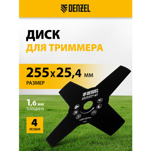 Диск для триммера Denzel 255 х 25, 4, толщина 1, 6 мм, 4 лезвия 96366