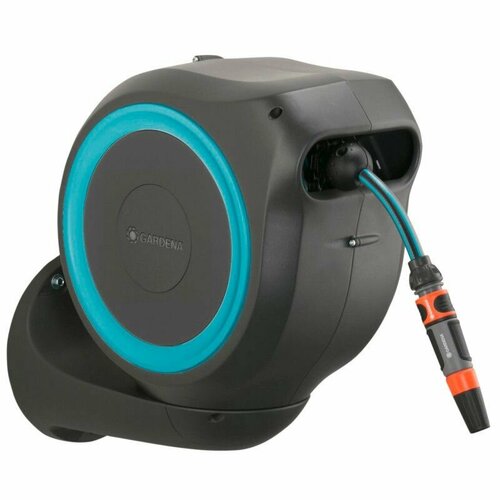 Катушка со шлангом настенная автоматическая Gardena RollUp L, 30 м, голубая серый