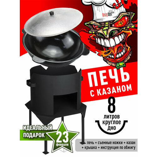 Казан чугунный CRAZY Chef 8л + печь для казана черный