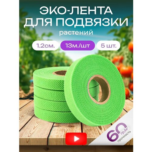Садовая лента для подвязки растений, зеленая - 1.2см, 13м - 5шт