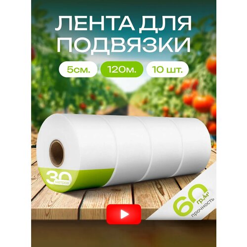 Садовая лента для подвязки 60гр/м2, ширина 5см, длина 120м (10 бобины по 30м)