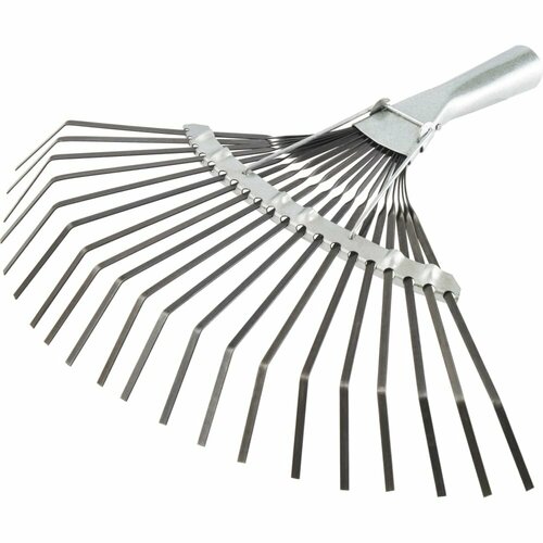 Веерные пластинчатые грабли КЭС оксидированные, ширина 385 мм, 20 зубьев, тулейка 30 мм, без черенка 21010026