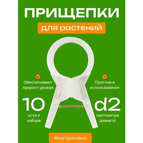 Прищепки подвязка для растений прозрачные d2см - 10 шт / Клипса - держатель садовый