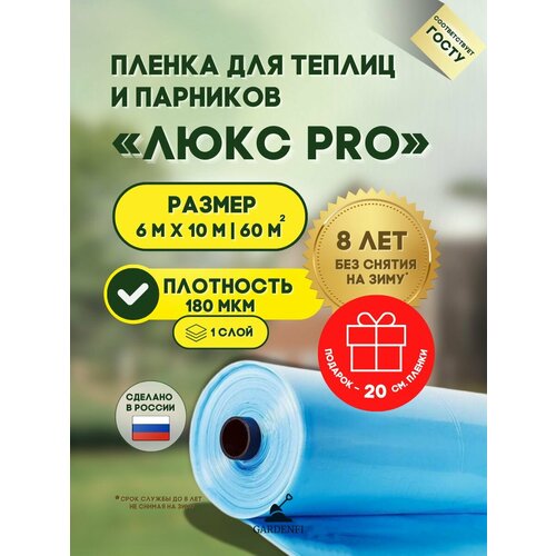 Пленка многолетняя "Люкс" 180 мкм. Ширина 6 м. длина 10 м. для теплиц и парников, цвет прозрачно-синий.