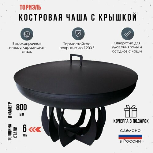 Костровая чаша Глубокая D-800, толщина стали 6 мм. с крышкой + кочерга