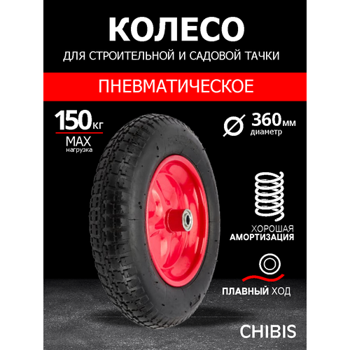 Колесо, пневматическое, для садовой тележки, D16, чёрное, красное