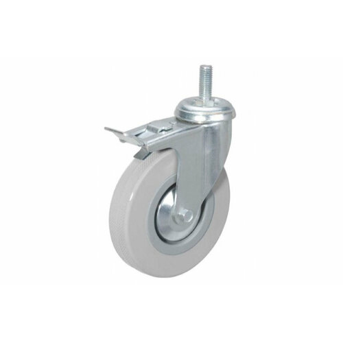 Колесо серая мягкая резина крепление болтом М10 с тормозом SCTGB93 75 мм MFK-TORG 5064075M