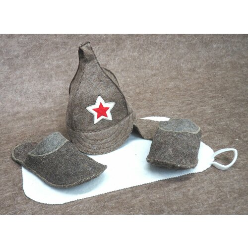 Набор для бани и сауны войлочный мужской буденовка (шапка, коврик, тапочки)