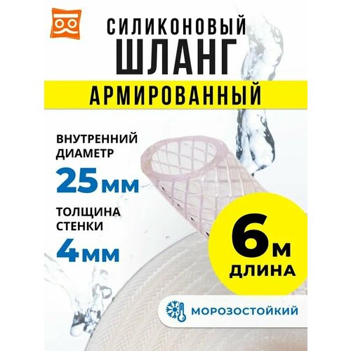 Силиконовый шланг армированный 25 мм, дюймовый, стенка 4 мм (6 метров)