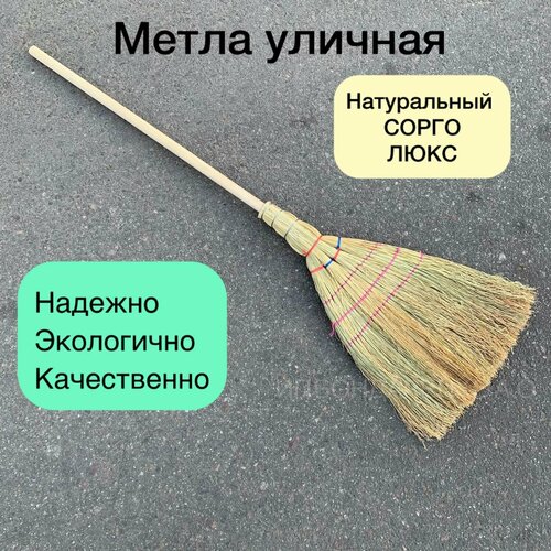 Метла уличная, деревянная ручка, сорго люкс, длина 120см, с ручкой