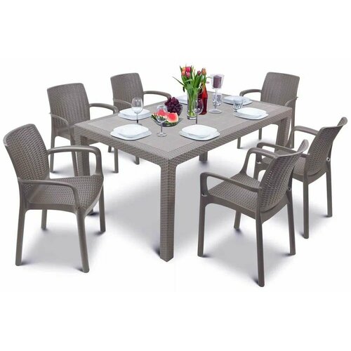 Обеденная группа Саманна 6 персон под ротанг, шоколад