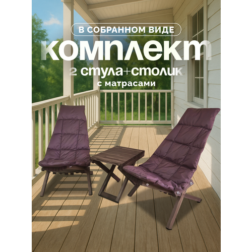 Комплект садовой мебели Кентукки 2 кресла 1 столик, Комплект 2 шезлонга 1 стол, складные Кентукки, Сосна, венге