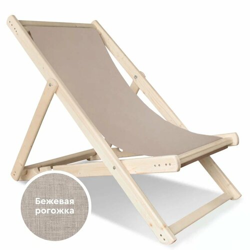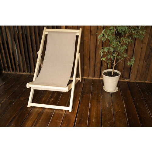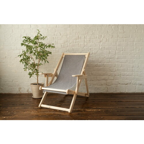 Шезлонг с светло-серой тканью и подлокотниками, деревянный, складной