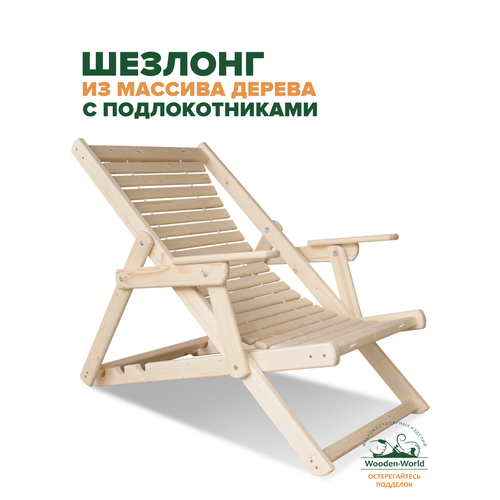 Шезлонг "Wooden World" - складной шезлонг с подлокотниками и клетчатой тканью для дачи и отдыха