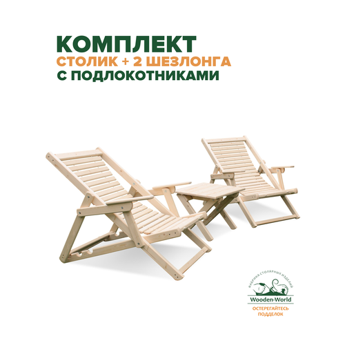 Шезлонги для дачи складные деревянные с подлокотниками со столиком комплект