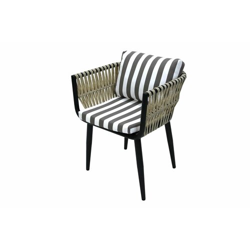 Кресло к набору Монте-Карло арт. MK-MT005-2024 (каркас черный, ротанг жемчуг, ткань полоска) (В)