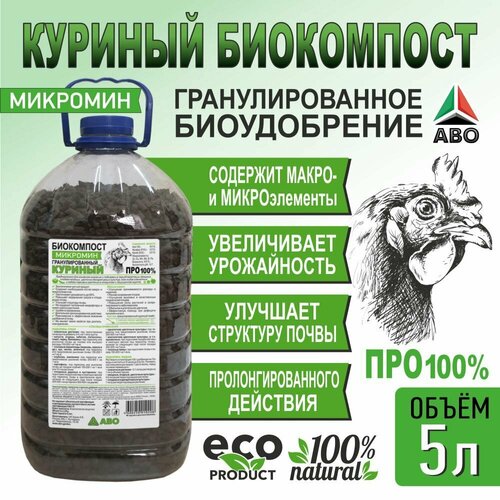 Удобрение Куриный биокомпост (гранулированный) в гранулах для сада и огорода Микромин 5 л.