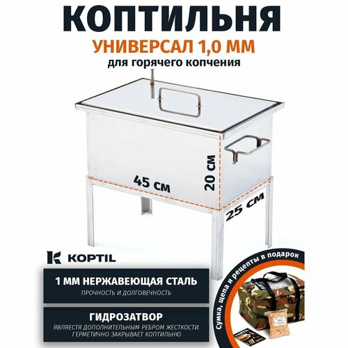 Коптильня на щепе Koptil Универсальная с гидрозатвором, 25х45х30 см