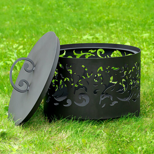 Костровая чаша Узор диаметр 50 с плоским дном с крышкой пламегасителем FIRE-HOUSE